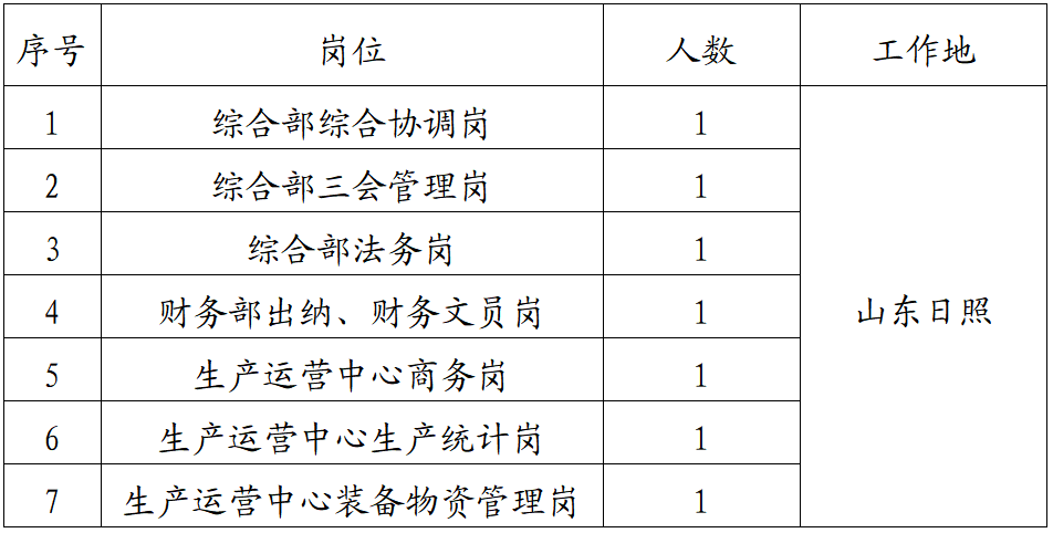 为了加强中铝(日照)矿产资源有限责任公司队伍建设,根据工作需要,经研究决定,面向中铝集团内部以竞争上岗方式产生公司本部各部门员工7名。现将有关事项公告如下: