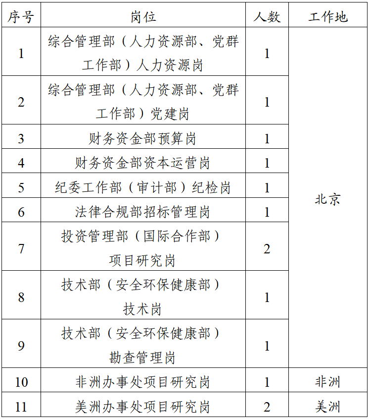 为了加强中铝(雄安)矿业有限责任公司(以下简称公司)队伍建设,根据工作需要,经研究决定,面向中铝集团内部以竞争上岗方式产生公司本部各部门员工13名。现将有关事项公告如下: