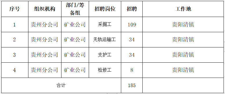 中国铝业股份有限公司贵州分公司面向中铝集团内部公开招聘公告