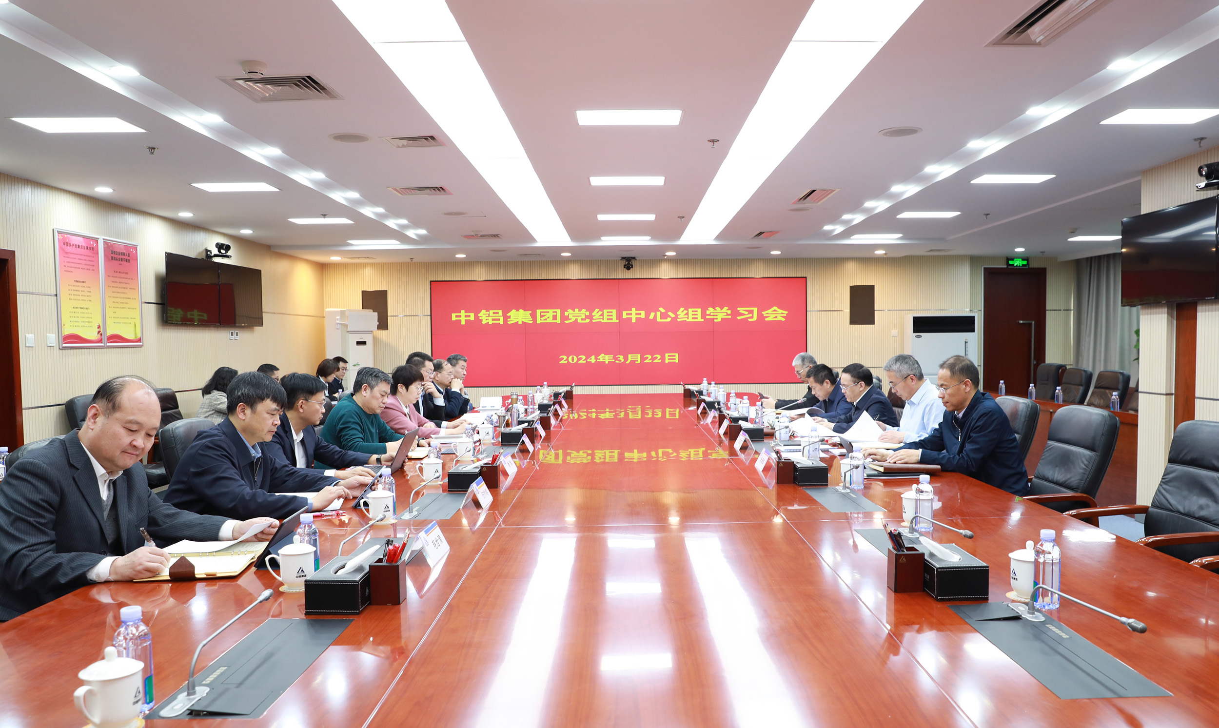 本网讯 (见习记者 李文锐)3月22日,中铝集团党组中心组召开专题学习会,以“深入学习贯彻习近平总书记近期重要讲话精神和中央有关制度要求,推动新质生产力加快发展”为主题,认真传达学习习近平总书记在全国两会期间的重要讲话精神和全国两会精神、习近平总书记关于新质生产力的重要论述和中央近期下发的党内法规文件。中铝集团党组书记、董事长段向东主持会议并作交流发言。中铝集团党组副书记、总经理王石磊,党组副书记、董事刘建平,党组领导叶国华、董建雄、皇甫莹、田永忠参加学习并围绕学习内容作研讨交流。