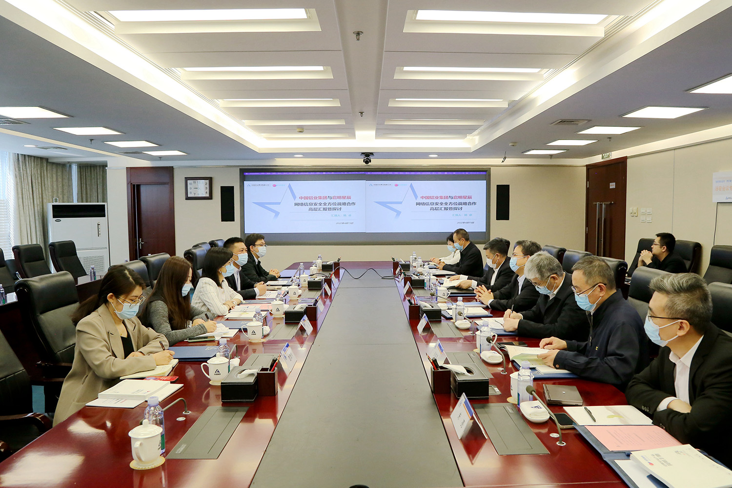 中铝集团总经理助理武建强,中铝集团办公室、中铝股份、中铝信息及启明星辰集团有关人员参加会见。