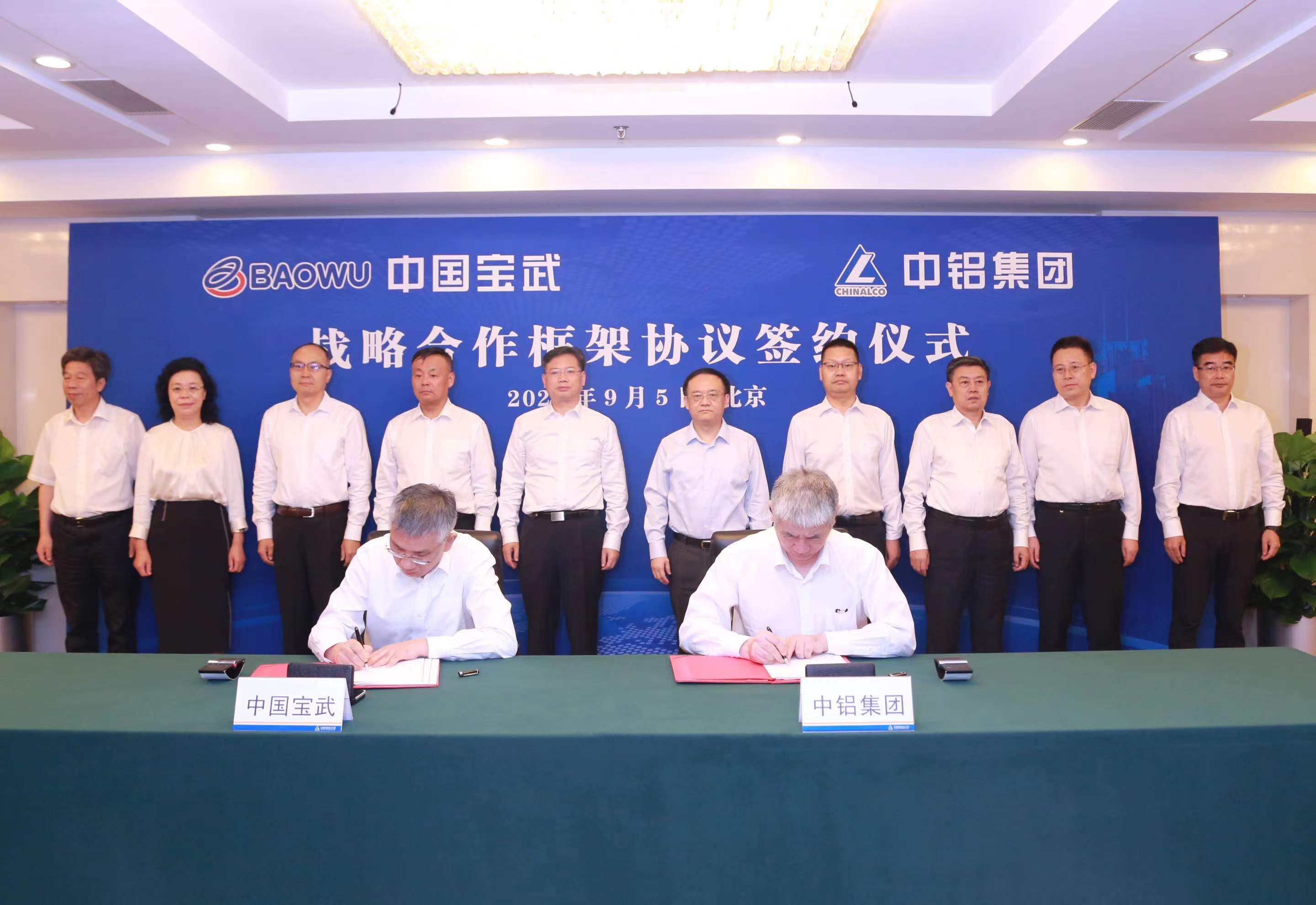 本网讯 (见习记者 李文锐)9月5日,中铝集团与中国宝武在中铝集团总部签署战略合作协议。中铝集团党组书记、董事长段向东与中国宝武党委书记、董事长胡望明举行会谈并共同见证签约。中铝集团党组成员、副总经理董建雄与中国宝武党委常委、副总经理侯安贵分别代表双方签署协议。中铝集团党组成员、副总经理田永忠主持签约仪式。