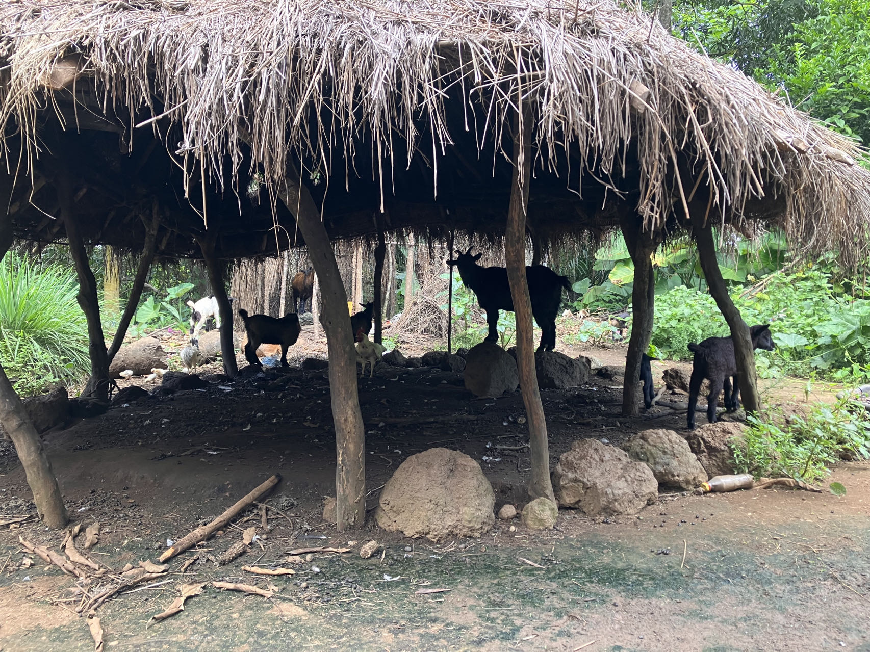 中铝几内亚项目周边没有城镇,只零星分布着一些典型的非洲小村庄。村民住在简陋的茅草屋里,原生态粗木头竖起来围成一个圆圈作为“承重墙”,上面搭建茅草编织的锥形屋顶,泥巴地上铺几床草席,便是一个普通人家的全部。